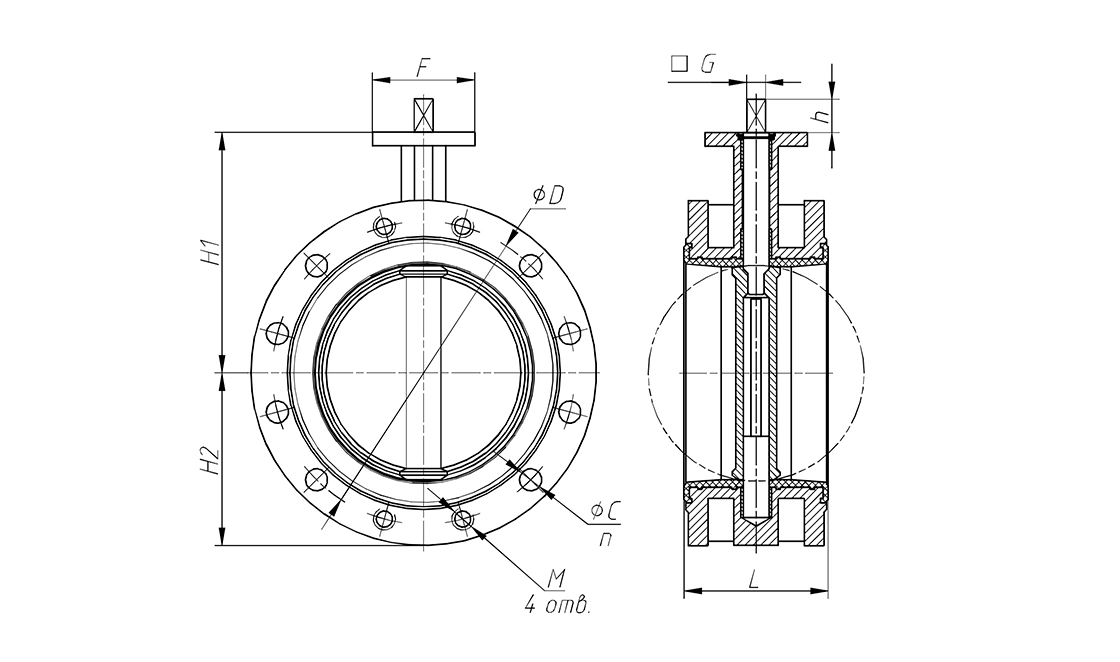 • Условный проход: DN 50 - DN 1200 (Затворы большего диаметра по запросу)